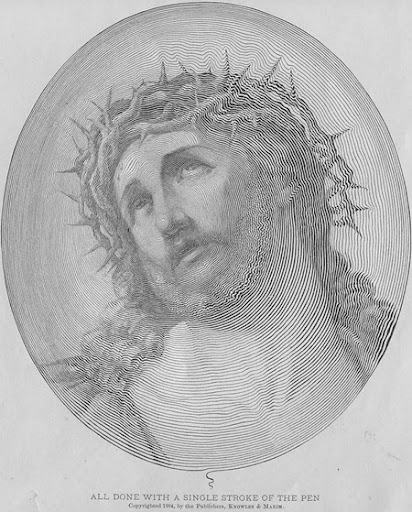 This picture of Jesus Christ was done with one pen stroke. It starts on tip of the nose and ends on the bottom.