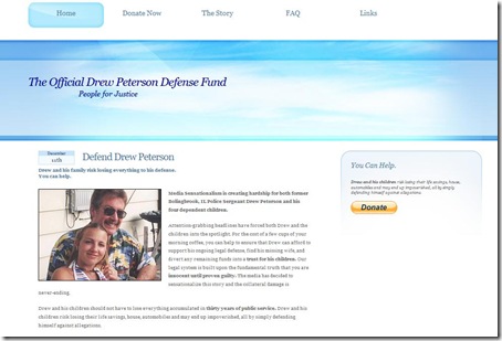 We know American people are very generous whenever someone or some a family suffers a great loss, they'd like to donate money. But for the case of Drew Peterson, the Illinois police whose third wife Kathleen Savio died of suspected foul play and fourth wife Stacy Peterson vanished this October, we are skeptical of the willings of generous American people. We can't definitely say Drew Peterson is the one who orchestrated his two wife's deaths, but we do think he is a suspect. The former police now constructed http://defenddrew.com/ to beg for public help to raise his legal defense. Let's us know if you will donate or not to Drew Peterson Defense Fund. For us, we will not.