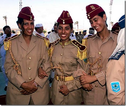 Liberian Libyrian President Mummar Gaddafi brought his virgin female bodyguards among a 400-strong entourage on a state-visit to France. Those women clad in camouflage uniforms who are trained killers will provide the Libyan leader with 24-hour protection. Link Tags: