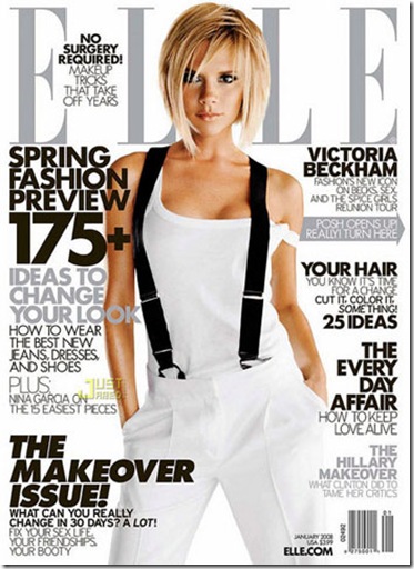 As the covering girl of next year's first issue of Elle magazine, Victoria Beckham shares her design career, pre-posh youth, her story with husband David Beckham and her lifestyle in Elle January 2008.