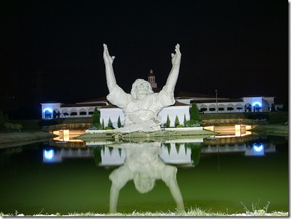 Big Butter Jesus is a giant Jesus statue built for Monroe's Solid Rock Church in Ohio. The 62-foot high and16,000 lb sculpture finished in 2004 cost $250,000. The statute is so large that it can be visible from the nearby interstate highways and usually attracts a lot of traffic jams. The otherwise fameless sculpture gained instant popularity when the Bob & Tom show broadcast Heywood Banks' song (video and lyrics below) with the same name in 2006.