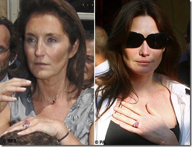 Picture of the same diamond ring on Carla Bruni and Cecilia's finger